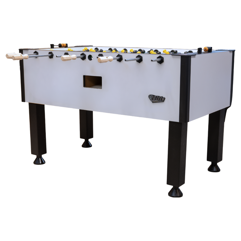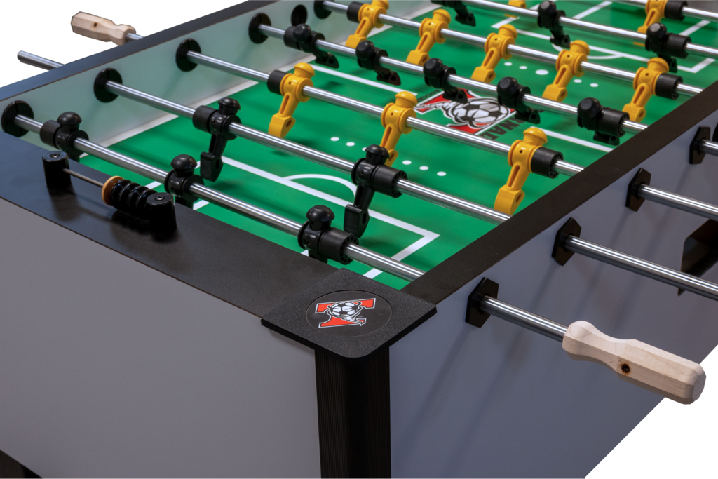 Professional grade performance in a more convenient package. This beautiful table includes the heavy-gauge rods, counterbalanced men, commercial-grade levelers and patented split bearings that make Tornado tables a favorite among Tournament players. A durable and attractive Argent Frost laminate finish on a 1 ½” thick cabinet ensures a great look now, and for years to come.